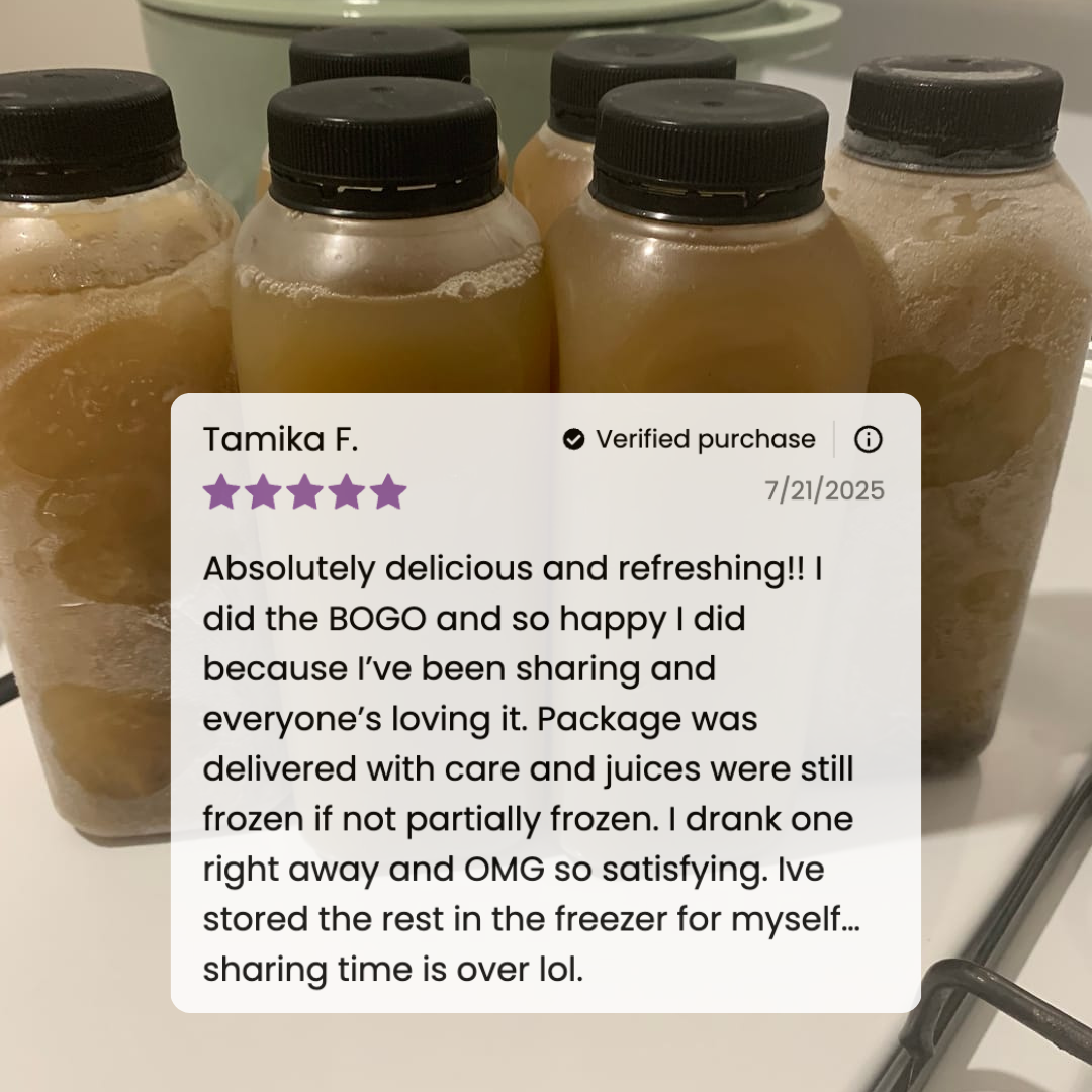 Our Sugarcane juice is cold-pressed fresh by us, quickly frozen, and shipped to your door!