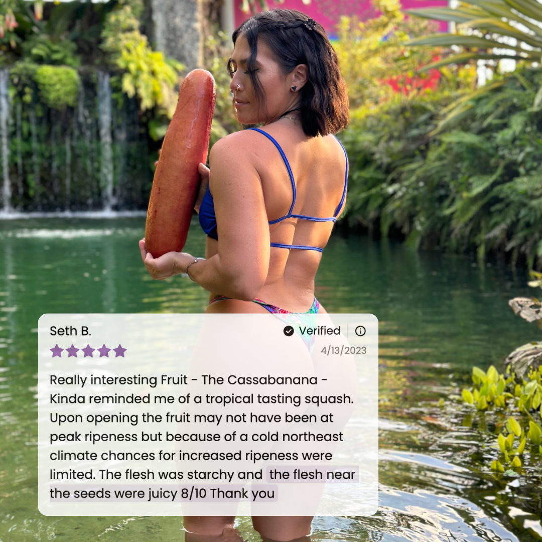 Its flavor profile is comparable to that of a melon. Cassabanana is ready to eat when it is picked.