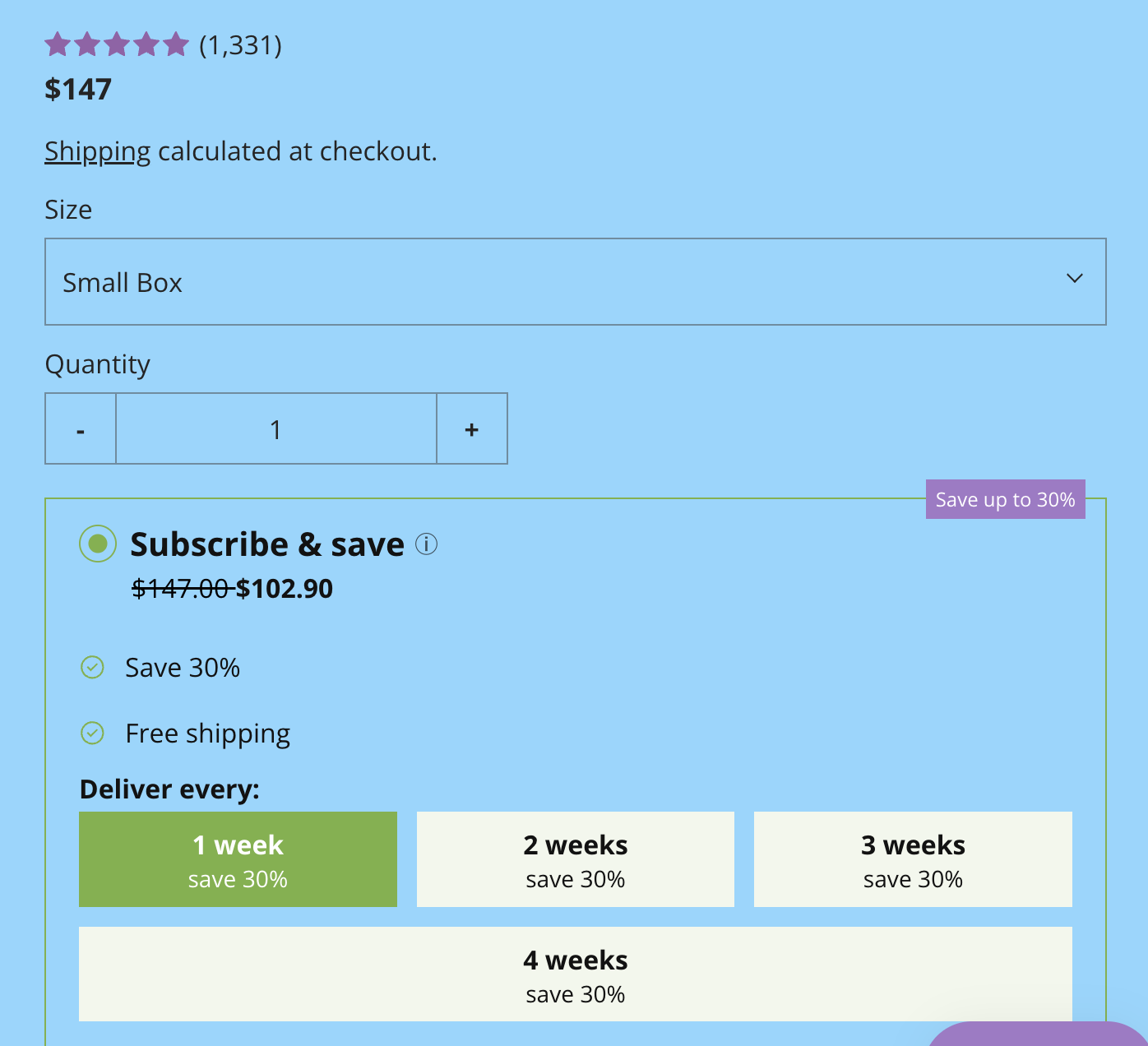 To Subscribe to your favorite fruit box, select the Subscribe & Save option at checkout as pictured below: