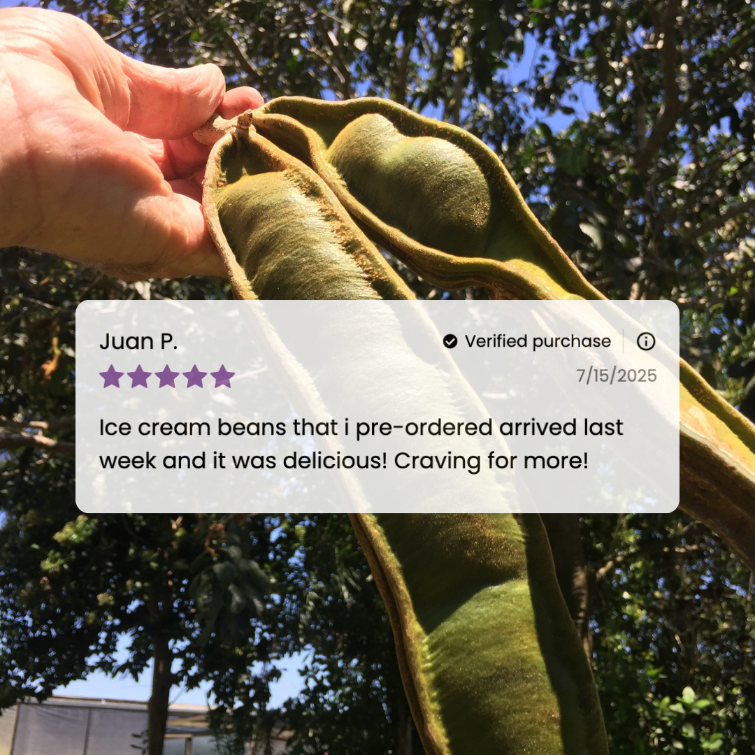 Ice Cream Bean is one of the most unique and delightful fruits on the planet. Crack open the long green pod to reveal soft, fluffy white pulp that tastes remarkably like sweet vanilla ice cream.
