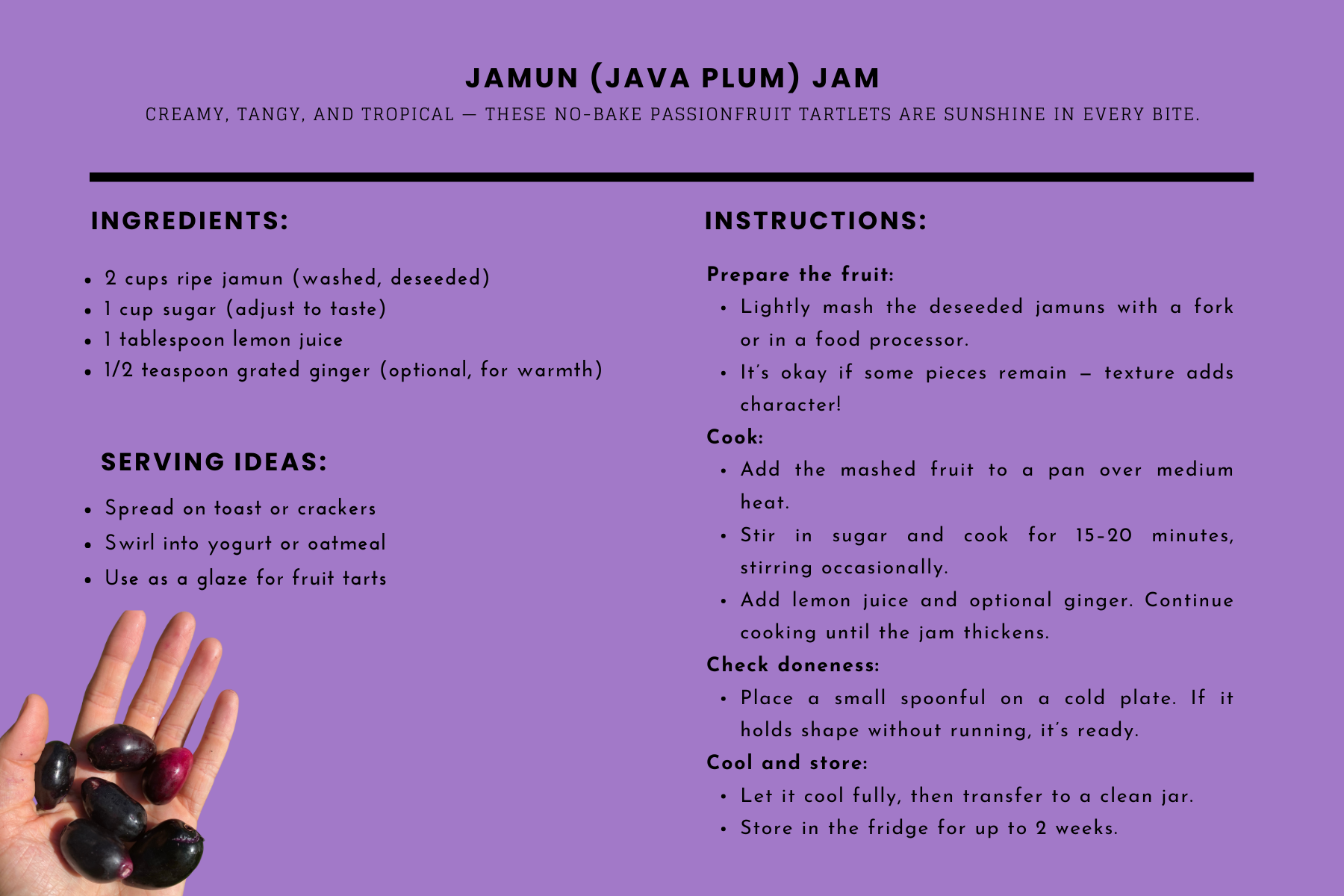 Jamun, also known as Java plum, is native to India, Myanmar, Sri Lanka, and the Andaman Islands. Our Jamun grows here in South Florida!