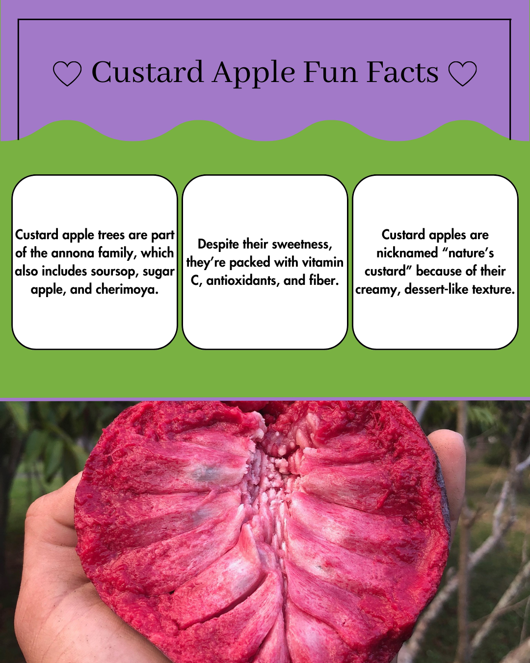 The Red Rane Reticulata is a standout among annonas! Its striking color, sweet flavor, and smooth texture make it a true favorite for fruit enthusiasts.