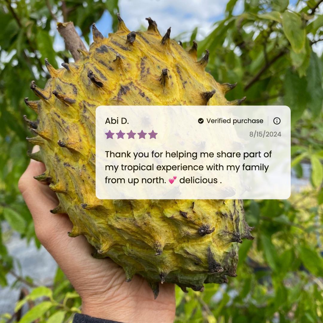 Grown on our small farm, each Rollinia is hand-picked and sent straight to you. This fruit arrives ready to eat, so enjoy it as soon as possible! For a slightly longer shelf life, store it in the fridge.